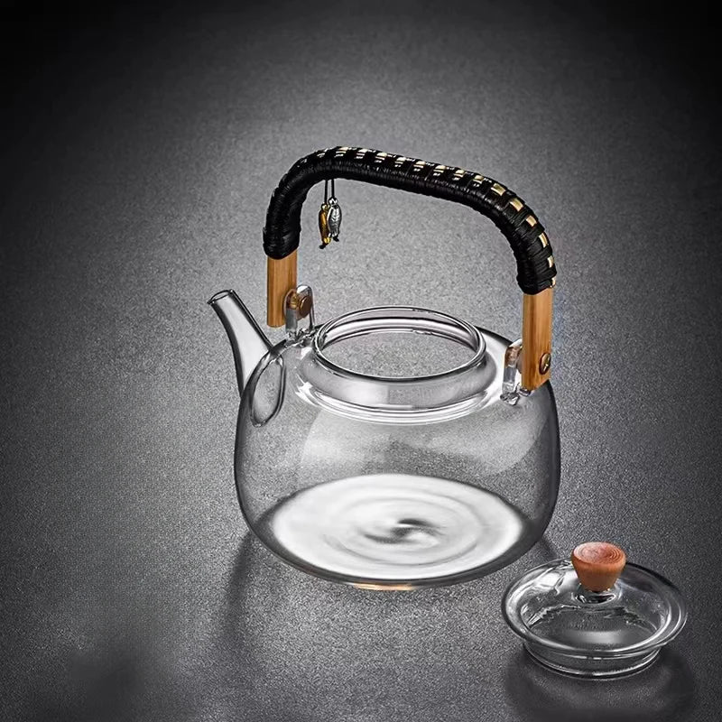 Tetera de vidrio de 1000 ml con asa tejida, tetera china resistente al calor, tetera de gas, tetera de vidrio transparente para té humeante, juego de té