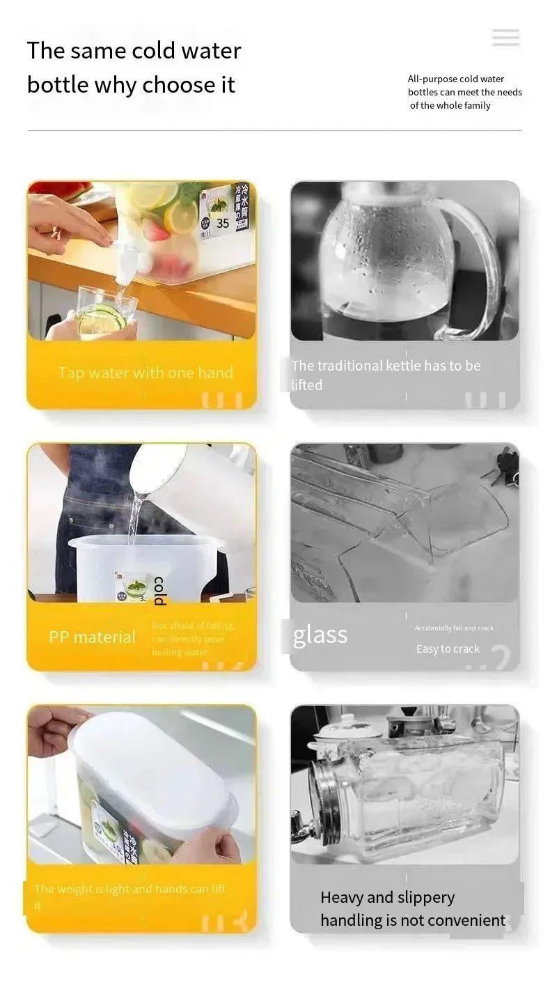 Jarra de agua fría de gran capacidad de 3,5 l, hervidor de agua fría con grifo en el refrigerador, dispensador de bebidas heladas, refrigerador y grifo