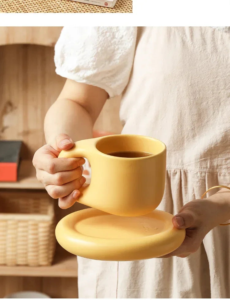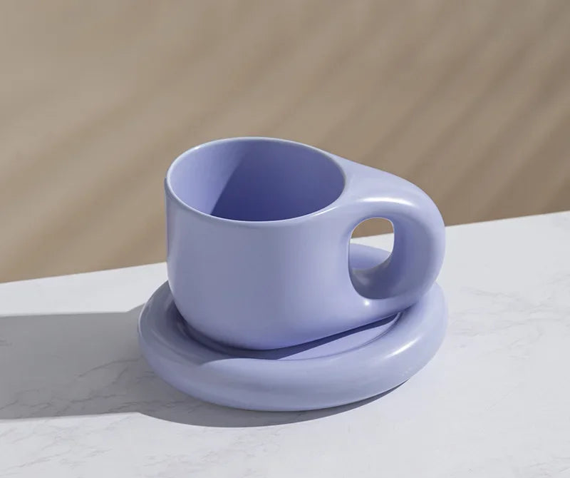Taza de cerámica Splash Ink Floriddle de 400 ml con platillo, tazas de café y platillos, taza de té para el hogar o la oficina, tazas de café, taza coreana de cerámica Pl