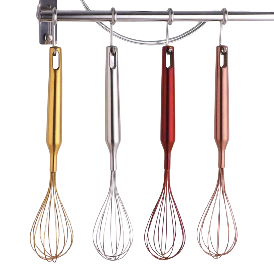CALIDAD: Fabricado en acero inoxidable, es resistente a la corrosión. No se dobla, debilita ni rompe. Cada batidor está hecho a medida con un color que no se altera.