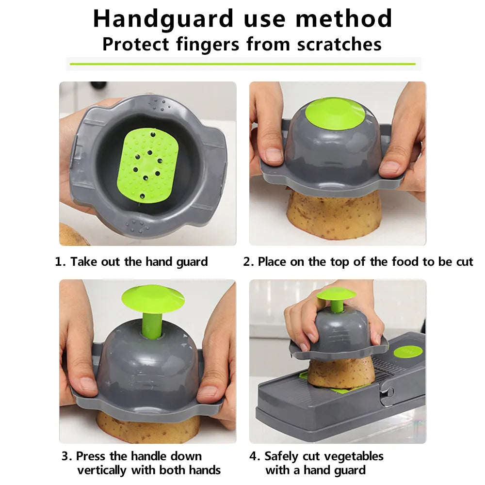 Este cortador de verduras está hecho de material ABS y está equipado con varias herramientas como trituradoras, rebanadoras, picadoras y molinillos, lo que le permite preparar 1 fruta, verdura u otro ingrediente a la vez.