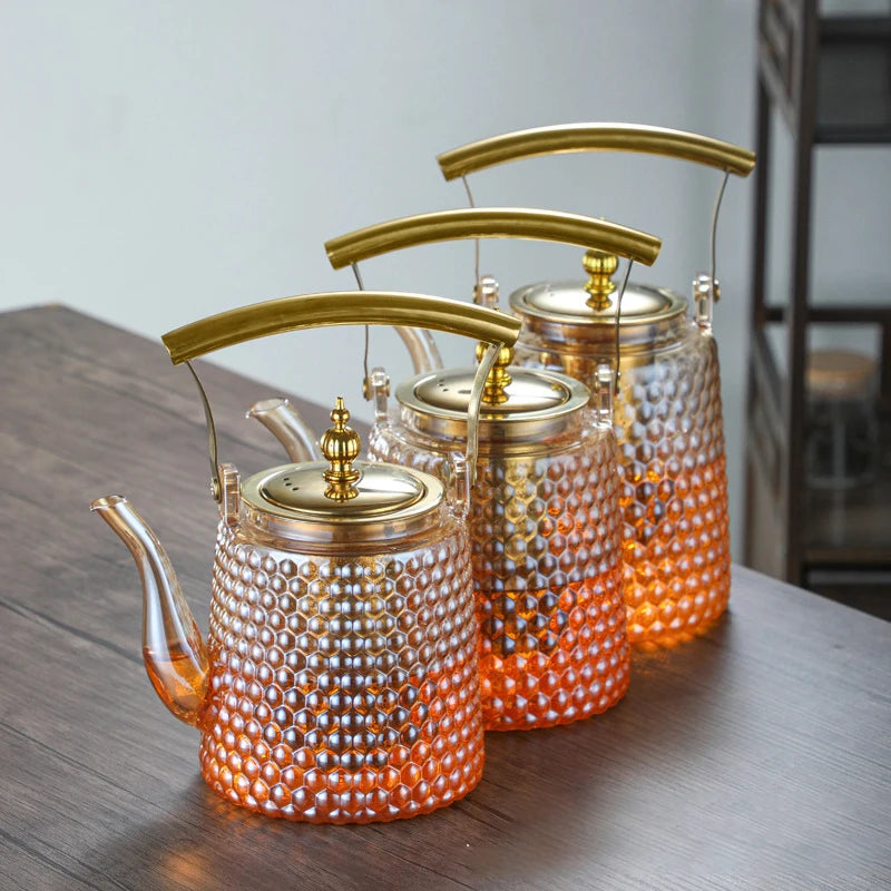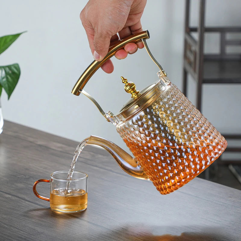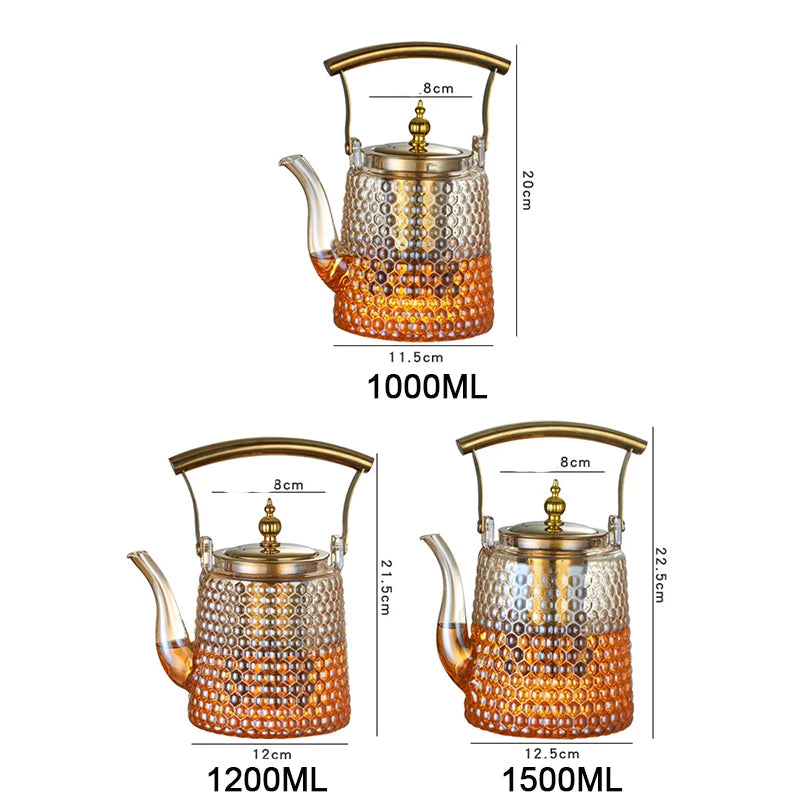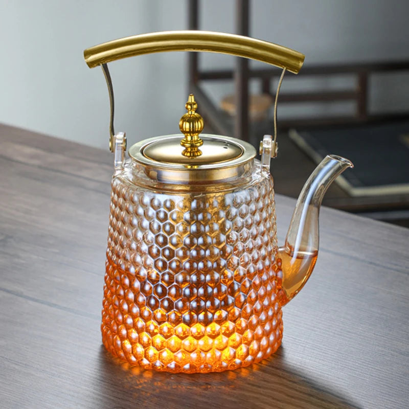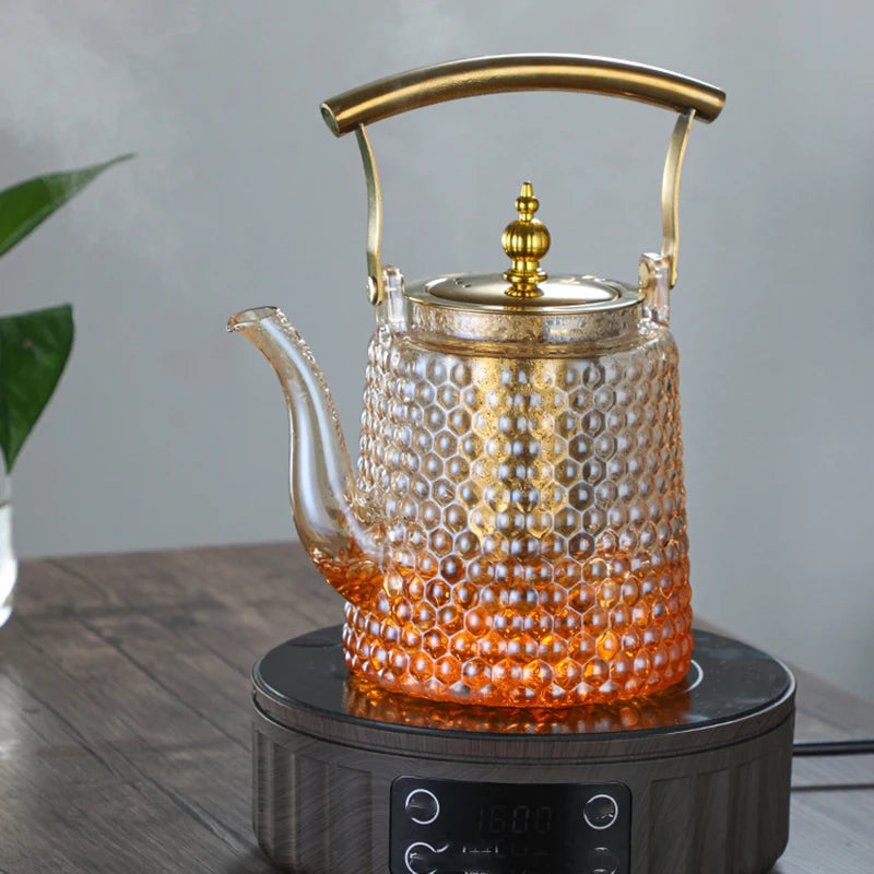 This Hammer Patterned Glass Teapot is perfect for brewing all types of tea, from traditional teas to herbal blends. With a built-in tea infuser and large capacity, this teapot makes it easy to enjoy your favorite tea on-the-go. Its heat-resistant glass and sleek design make it a must-have for any tea lover.