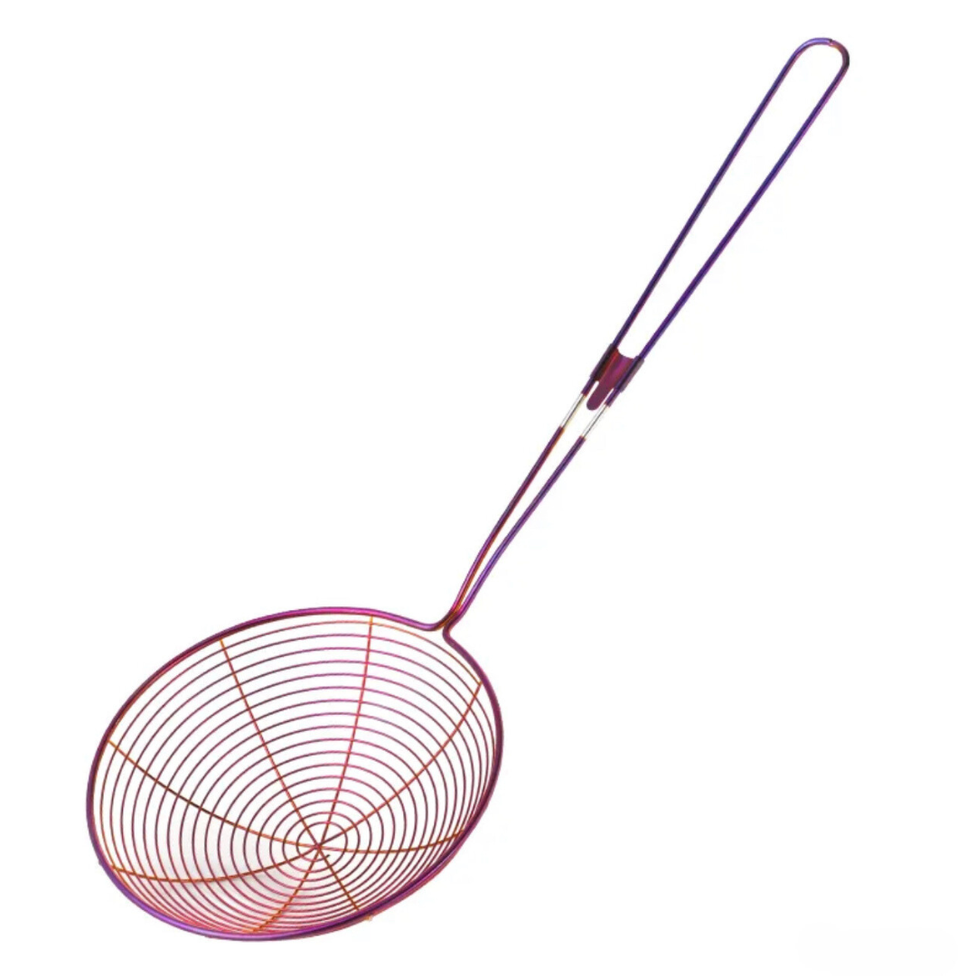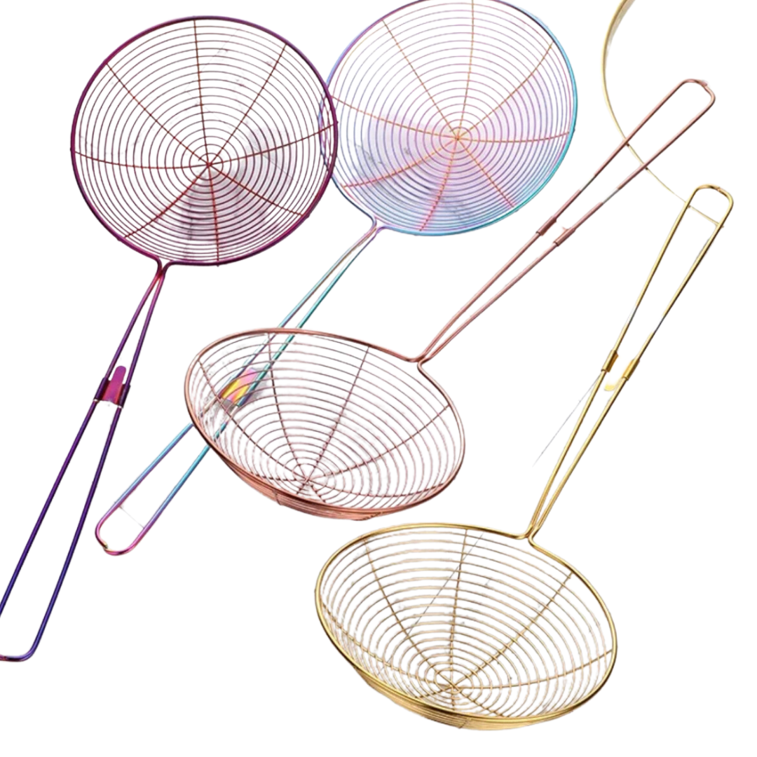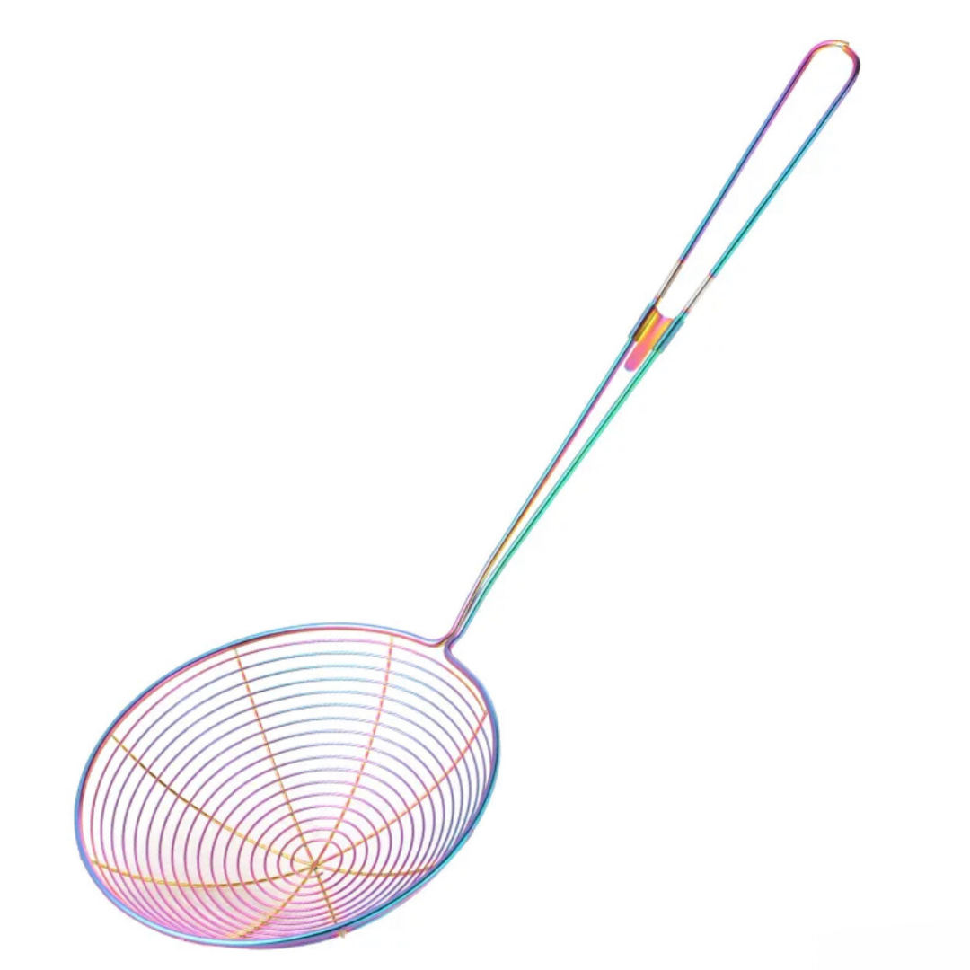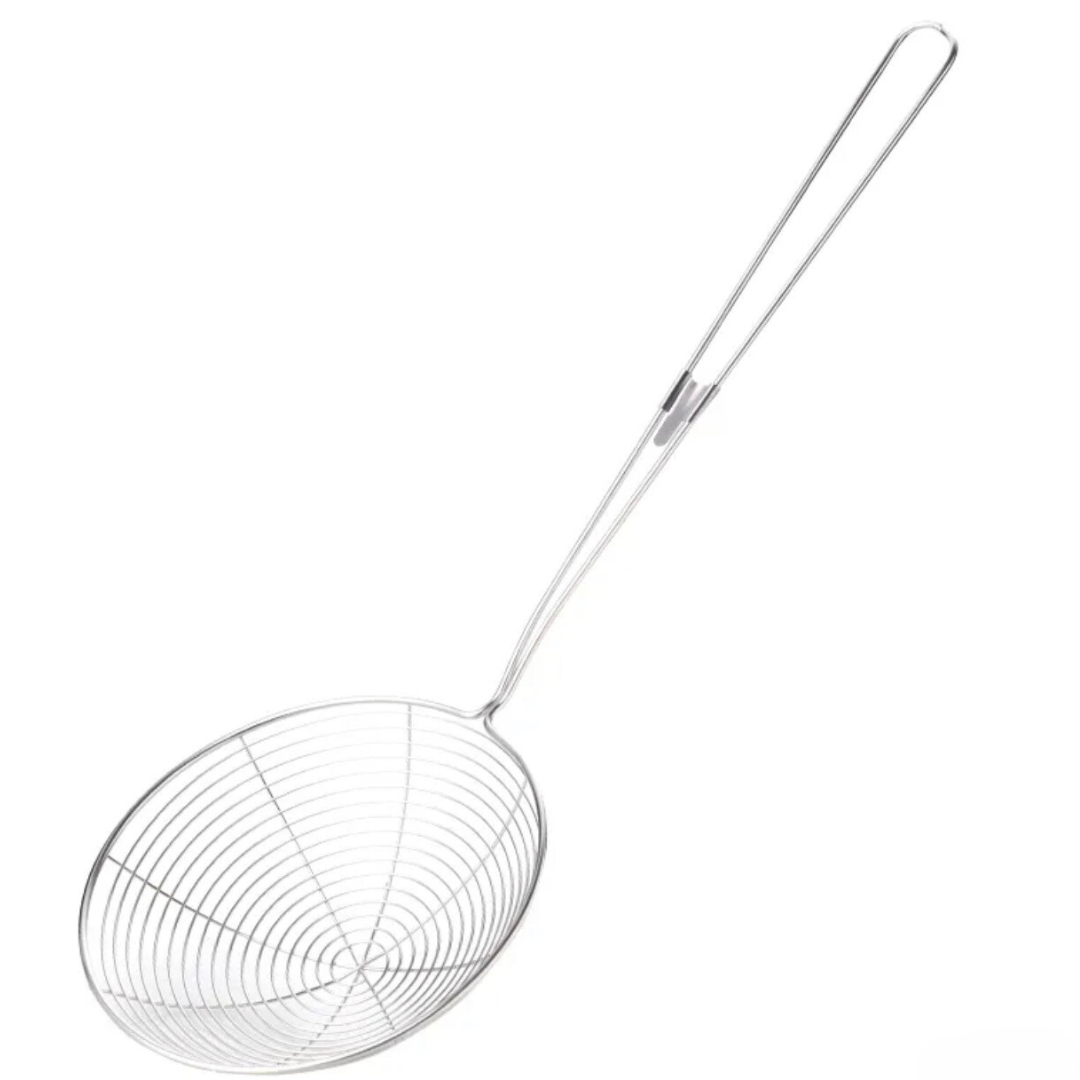 The long handle can protect your hands from hot grease and oils when you cooking or frying. Wire Strainer concave net catches food securely while releasing oil and and other residue. Perfect for frying foods, like potato chips, chicken legs, and scoop up noodles, Spaetzle, Pasta, Spaghetti and more.