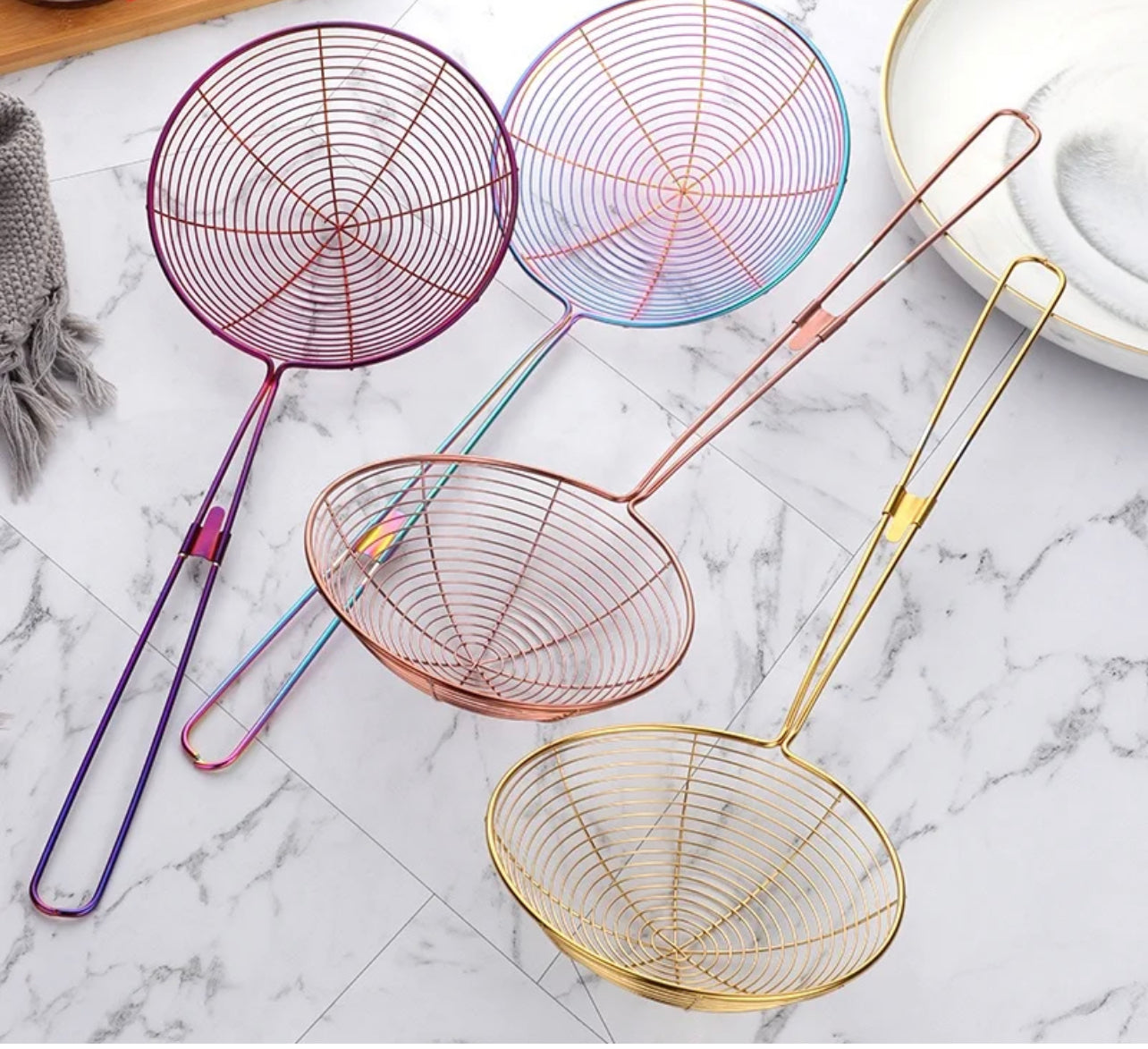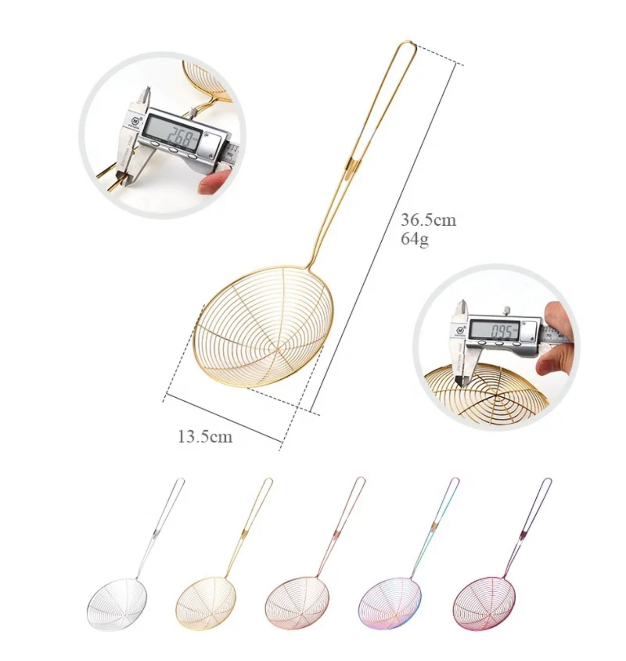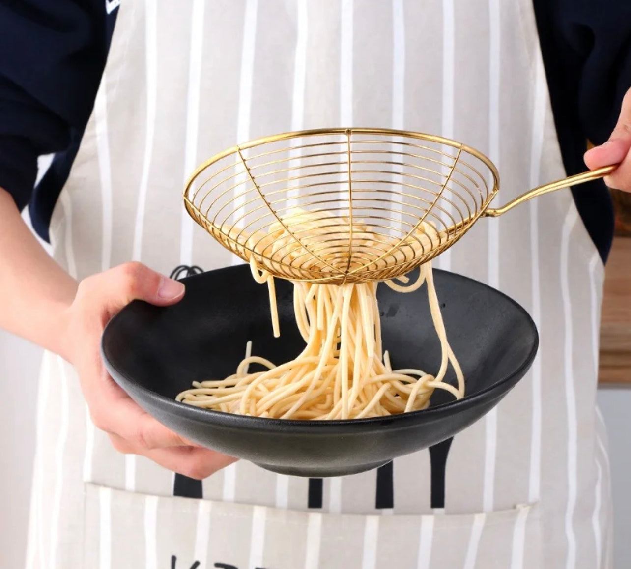 The long handle can protect your hands from hot grease and oils when you cooking or frying. Wire Strainer concave net catches food securely while releasing oil and and other residue. Perfect for frying foods, like potato chips, chicken legs, and scoop up noodles, Spaetzle, Pasta, Spaghetti and more.