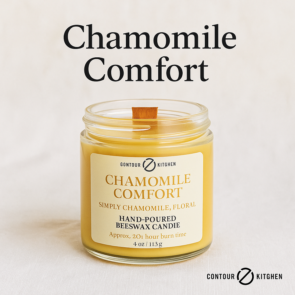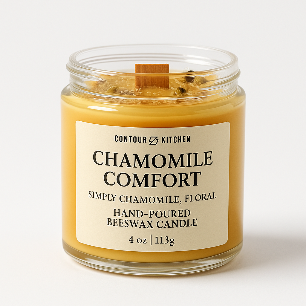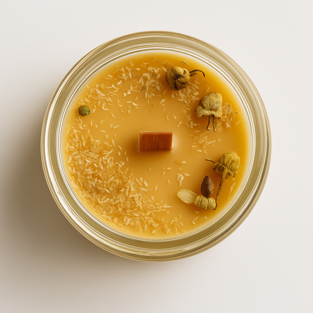 Unwind with the gentle, herbal notes of soothing chamomile blossoms. Hand-poured with pure beeswax and natural oils, our Chamomile Calm Candle transforms any space into a peaceful sanctuary, perfect for moments of rest and reflection. Crafted with eco-conscious materials for a clean, slow burn and a comforting botanical ambiance you’ll love.