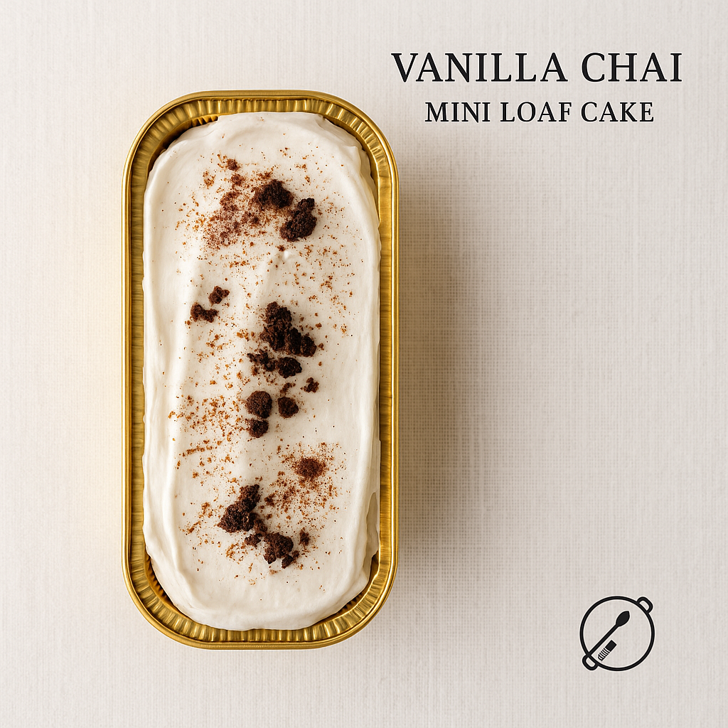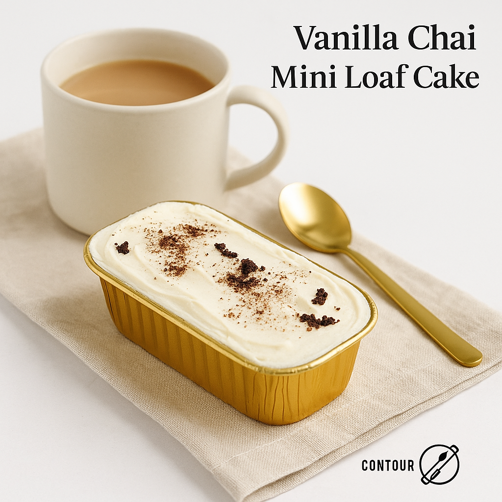 Indulge in the cozy flavors of our Vanilla Chai Mini Loaf Cake. This individually-sized treat combines soft vanilla cake with fragrant chai spices like cinnamon, ginger, cardamom, and a hint of clove for a deliciously spiced bite in every slice.