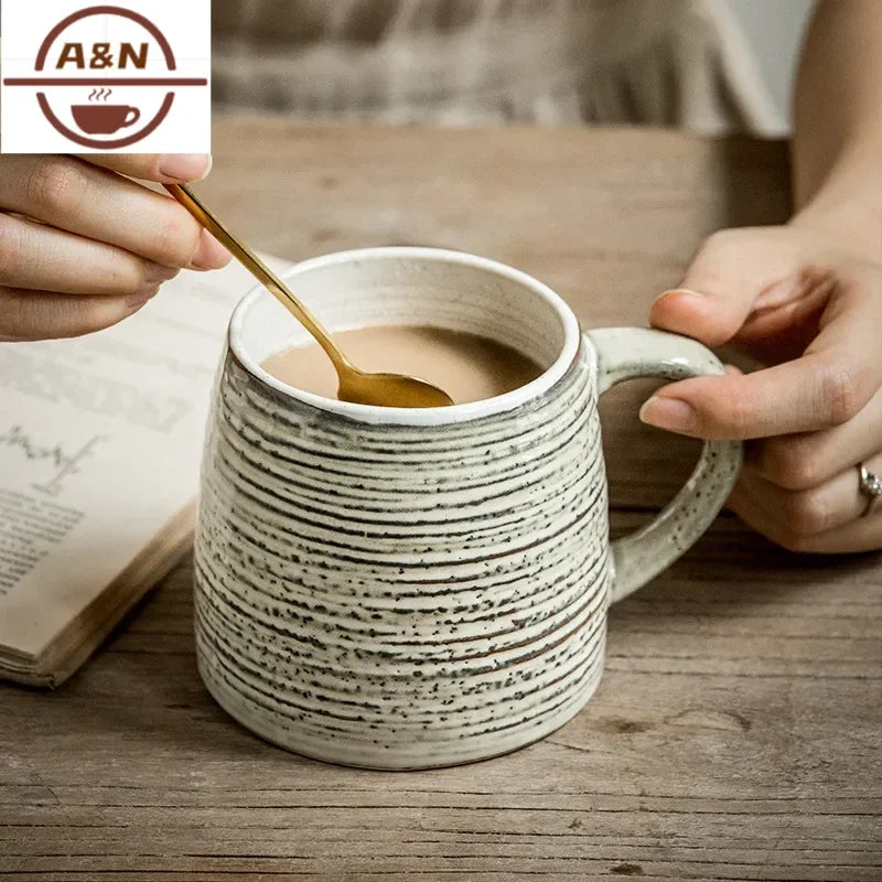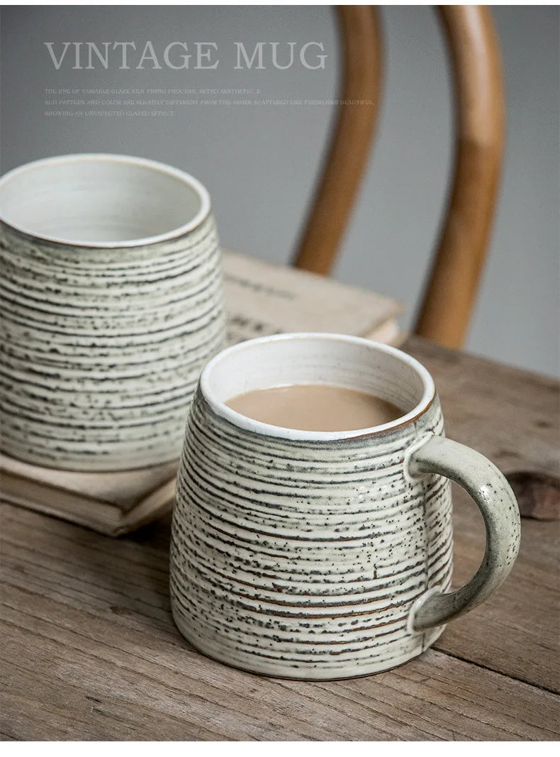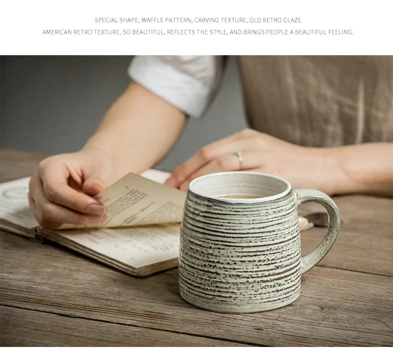 Vintage Coffee Cups 500ML Japanese Coffee Mug Thread mugs Ceramic Water Cup Large Capacity Drinkware Home Office